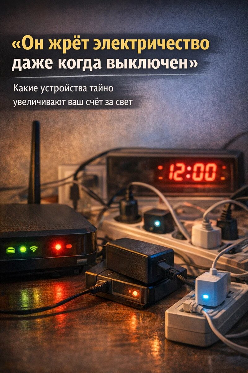 👉 “Спящее” энергопотребление. Это когда техника: И продолжает тянуть электричество 24/7. Если устройство: …оно почти наверняка потребляет энергию даже в режиме ожидания. По отдельности — копейки.