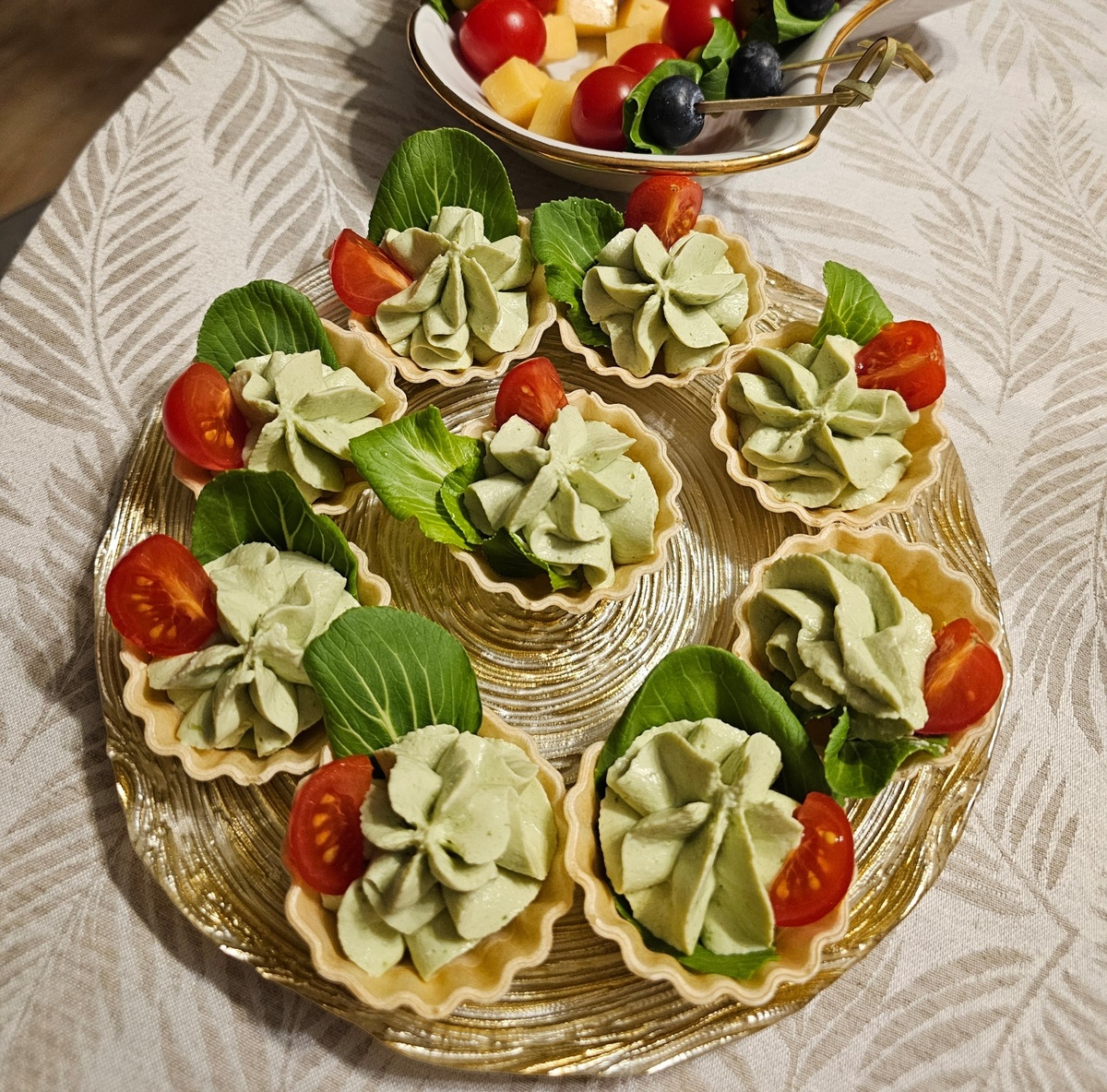 ☺️ Кбжу на 100 г (с вафлей): 155/8,5/8/13 Творог обезжиренный 100 г Авокадо мягкий 1 шт (~120 г мякоти) Чеснок 1-2 зубчика Огурец маленький ~50 г (по желанию, я делала с ним и без, он придаёт немного свежести) Соль по вкусу Тарталетки 10 шт Всё погружным блендером хорошенько пробить и наполнить тарталетки из кондитерского мешка (это чтоб красиво было). У меня тарталетки вафельные, с вб, в составе только пшеничная мука, без масла и без сахара. Чтоб они не размокали быстро, кладу листик салата на дно 👌 #лайфхак 🎄🔴