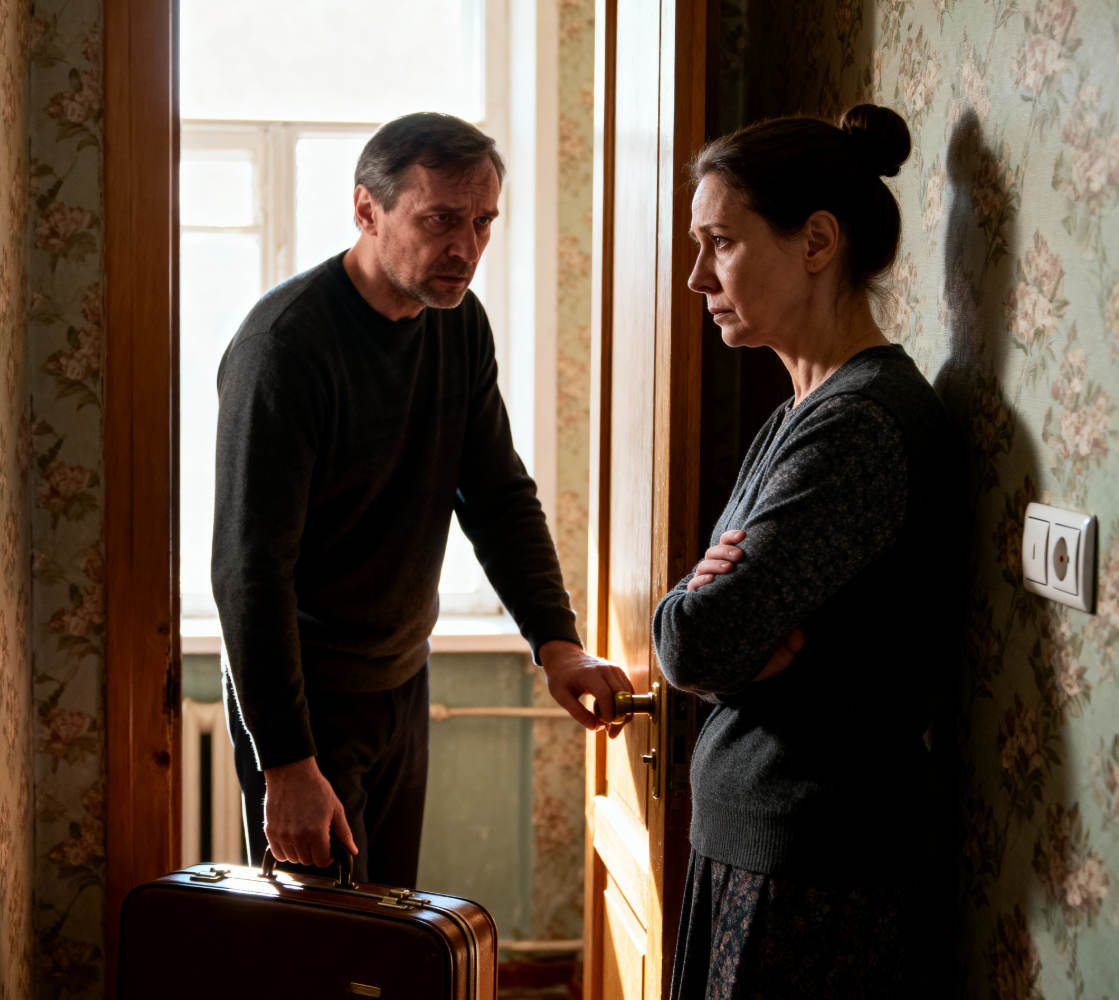 Марина вышла в коридор. Она была в своем старом домашнем костюме, с наспех собранным пучком волос, но выглядела пугающе собранной. В ее глазах не было слез, только какая-то бесконечная, свинцовая усталость.