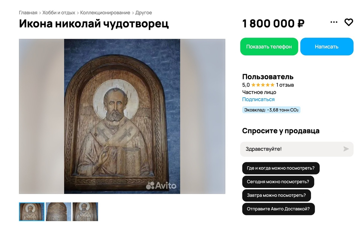😱💸 Икона ручной работы продаётся в Салехарде за 1,8 млн рублей
