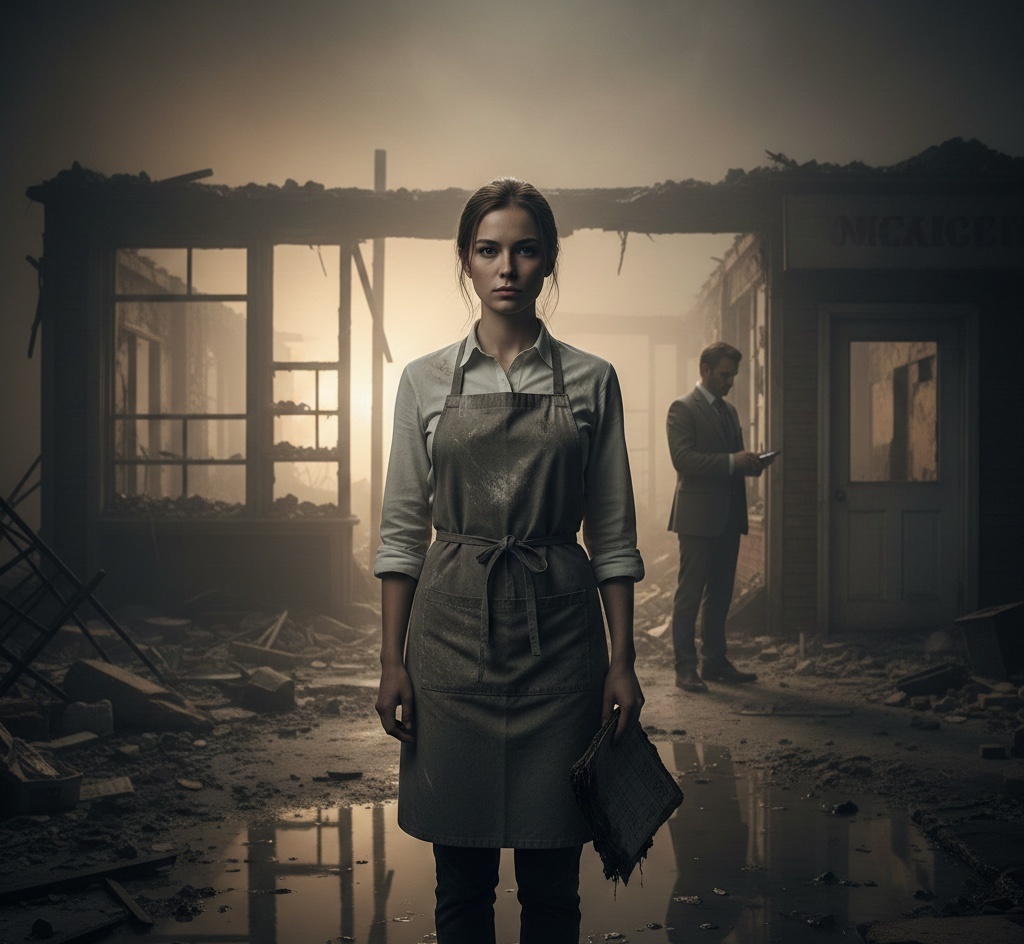 Алиса стояла посреди хаоса — черные подтеки на потолке, оплавленная касса, лужи от пожарных шлангов на полу, где еще вчера блестел кафель. В ушах стоял звон — то ли от недавней сирены, то ли от собственного онемения.