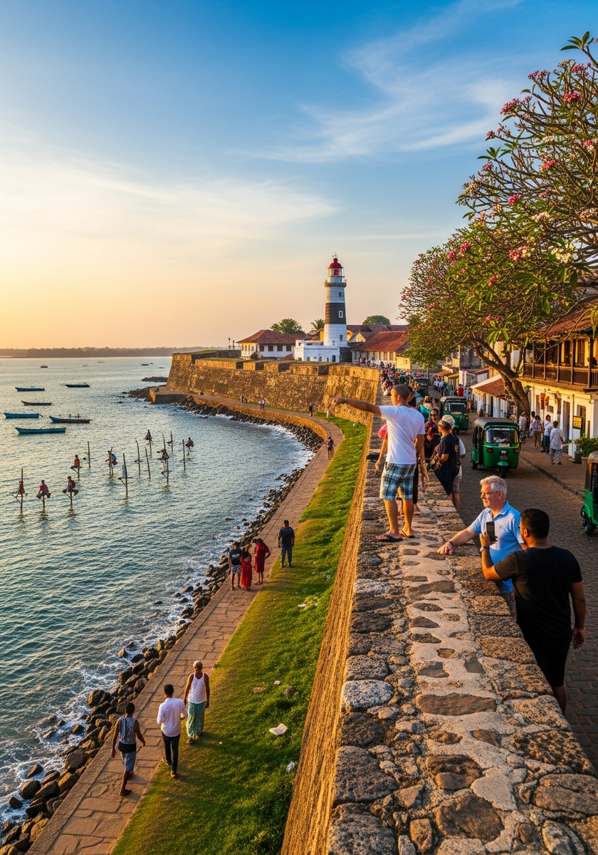 Это идеальное место для встречи заката — туристы и местные жители собираются здесь вечерами, чтобы полюбоваться уходящим за горизонт солнцем. В дневное время можно наблюдать за отважными ланкийцами, прыгающими со скал в бирюзовые воды. Хотя подняться на сам маяк нельзя, окружающие его бастионы предлагают не менее впечатляющие виды.