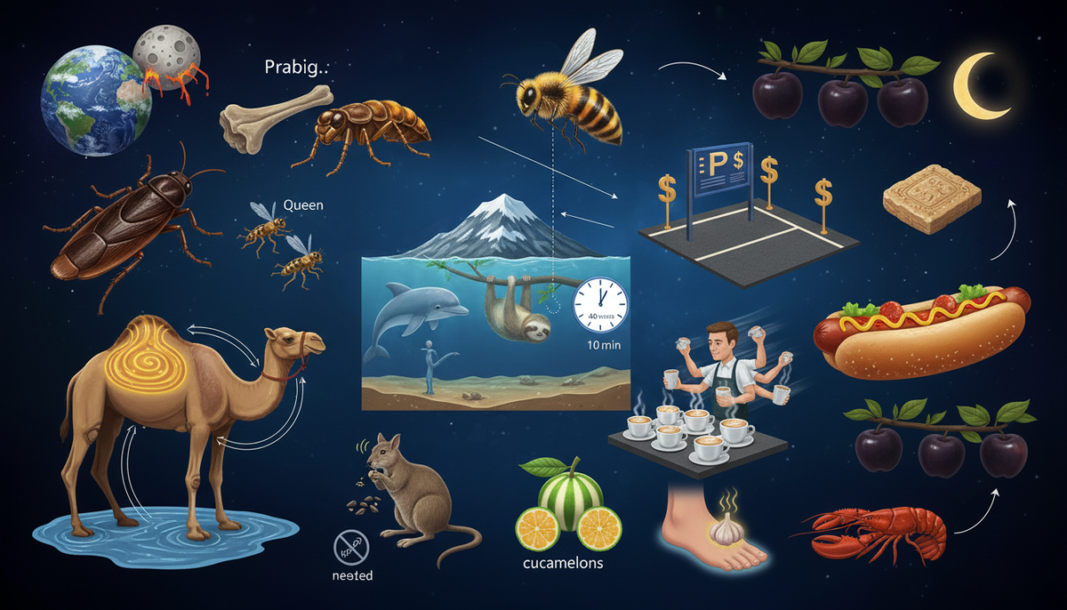 Мир полон невероятных открытий и любопытных деталей, о которых мы даже не подозреваем. От долгожителей среди насекомых до необычных фруктов и рекордов, связанных с кофе и чесноком — природа и человеческая изобретательность постоянно удивляют. В этом тексте мы собрали самые неожиданные и захватывающие факты. Погружайтесь — и откройте для себя мир заново! Тараканы известны своей невероятной живучестью: они способны выживать в самых суровых условиях и существуют на Земле с тех пор, как по ней бродили динозавры. Однако рекордсменом среди насекомых по продолжительности жизни является королева термитов — она может прожить до 50 лет! Обычные термиты живут всего 1–2 года. Что касается верблюдов, то в их горбах хранится не вода, а жир. Воду же они запасают в кровотоке. Пчёлы способны летать на высоте свыше 9000 метров — это даже выше вершины Эвереста, самой высокой горы на планете. А вот ленивцы могут задерживать дыхание дольше, чем дельфины: они замедляют сердцебиение и остаются под водой почт