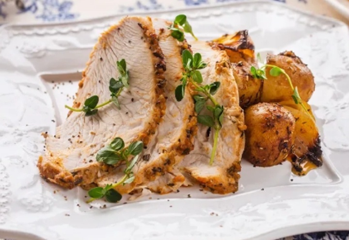 · Добавьте овощи: В форму к индейке можно положить нарезанные картофель, кабачки, морковь, лук-порей или помидоры черри. Они пропитаются соками и ароматами.