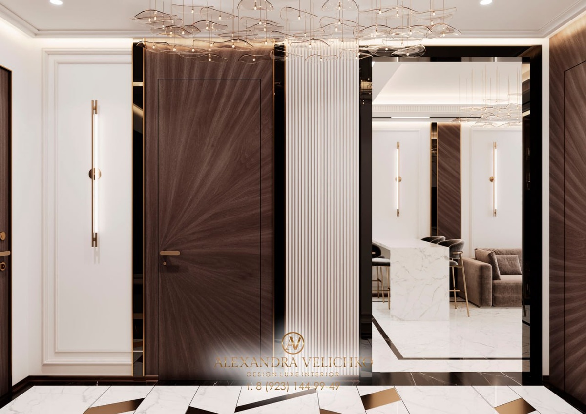 Лучшим интерьерным решением для вытянутой прямоугольной прихожей стало зеркало на всю стену. Оно удлиняет коридор в бесконечность, создавая эффект еще большего простора. Дизайнер интерьера Александра Величко +79231449949