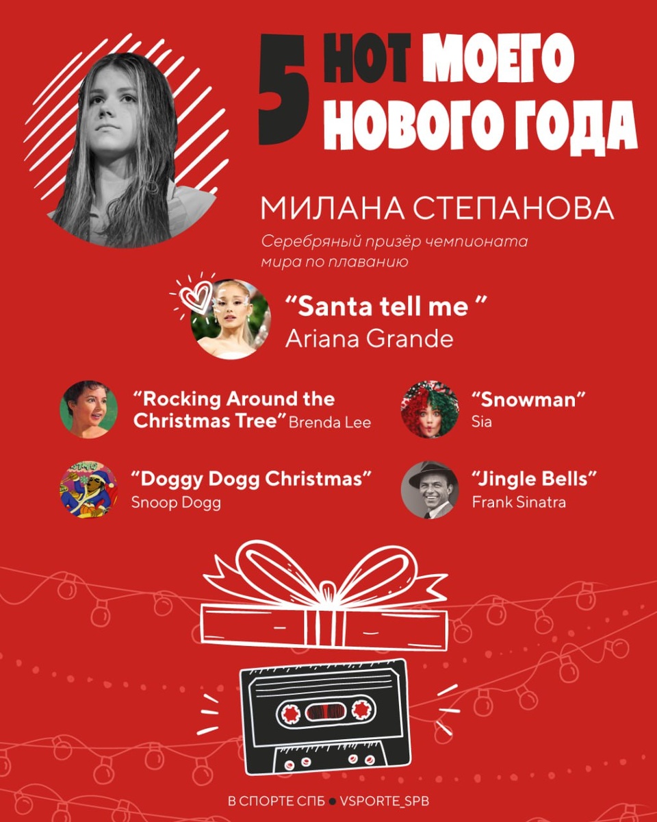 💃 Праздничный плейлист одной из самых перспективных молодых спортсменок Петербурга и серебряного призера чемпионата мира Миланы Степановой из СШОР №3 Калининского района!