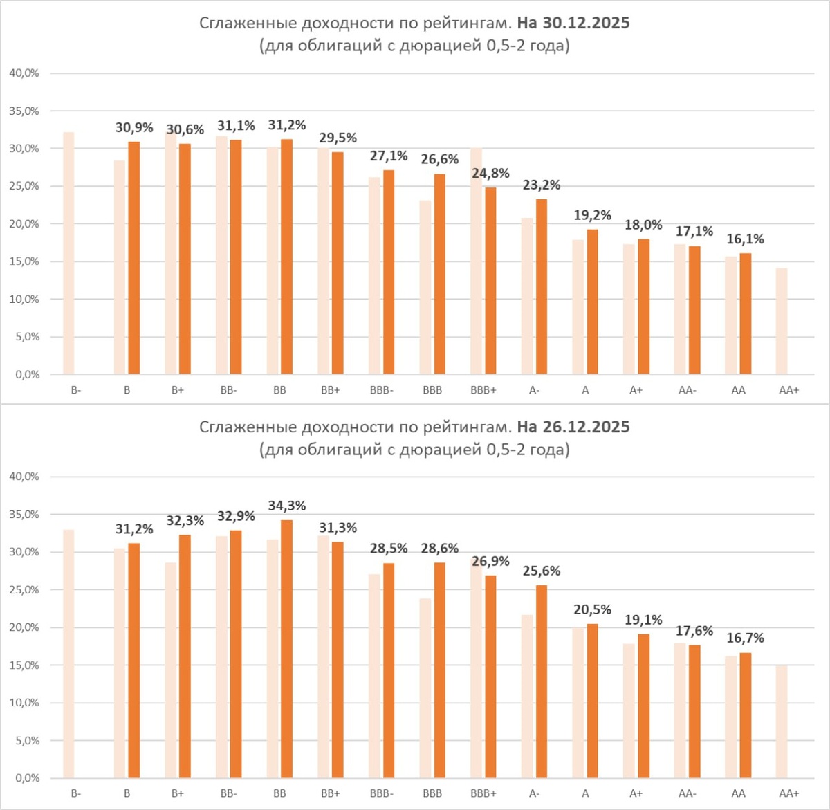 Как изменились средние доходности облигаций (по рейтингам) за неделю? Снизились от пиковых значений