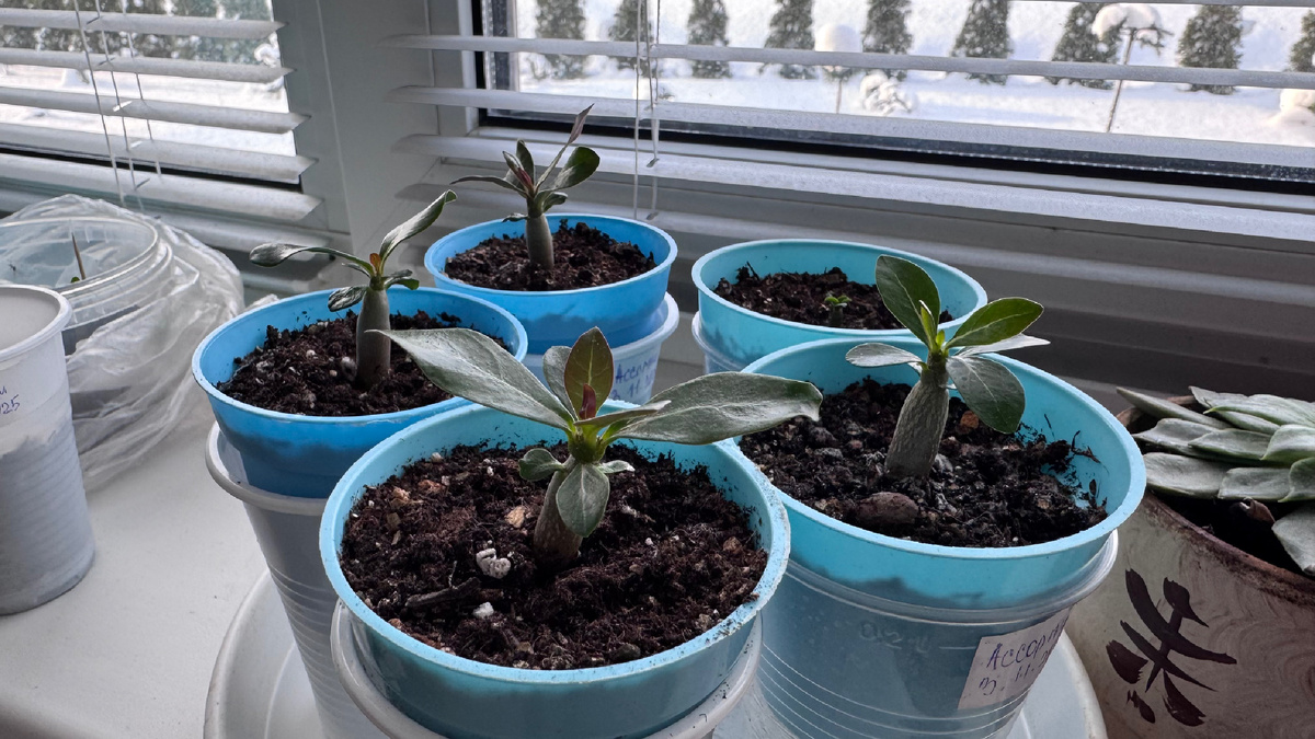 Прошло ровно два месяца с начала моего эксперимента с Адениумами. 3 ноября 2025 года я заложила семена на проращивание. После пикировки часть сеянцев я перевела на фитильный полив, и результат превзошел все ожидания!