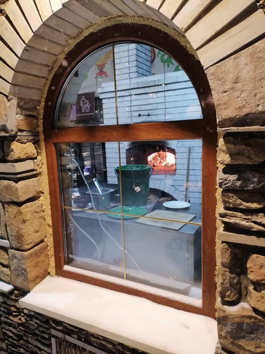 В блинной стоит настоящая дровяная печь, благодаря которой блинчики получаются сочными и пухленькими.