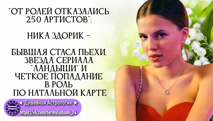 Пару лет назад Ника Здорик была больше известна как бывшая девушка Стаса Пьехи. Однако, все изменилось в новогодние каникулы 2025 года. Неожиданно на одной платформе выстрелил сериал "Ландыши. Такая нежная любовь", который получил очень высокий рейтинг, а с ним и народную любовь. В эти новогодние каникулы выходит второй сезон "Ландышей". Поэтому давайте рассмотрим поближе космограмму Ники Здорик, главной героини, которая сыграла мажорку из Лондона и силой случая попавшую в танковую часть жены офицера где-то под Вологдой. Ника Здорик родилась 16 марта 2001 года в Обнинске (север Калужской области) в многодетной семье. Родители Ники не имели профессионального отношения к кино — мама будущей актрисы окончила Обнинский институт атомной энергетики НИЯУ МИФИ, работала в компании по изготовлению и ремонту спецтехники. Красота и целеустремленность помогли Нике Здорик в карьере. В 2016 году она снялась в учебном этюде студентки Московской школы кино Анны Кузнецовой. Также Здорик в свое время п