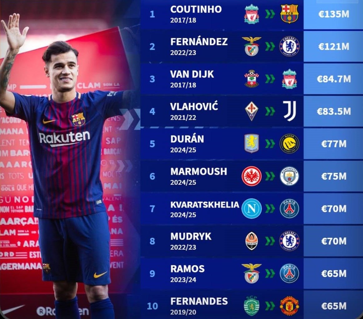 💰❄️ Топ-10 самых дорогих трансферов в истории футбола, которые произошли в период зимнего трансферного окна