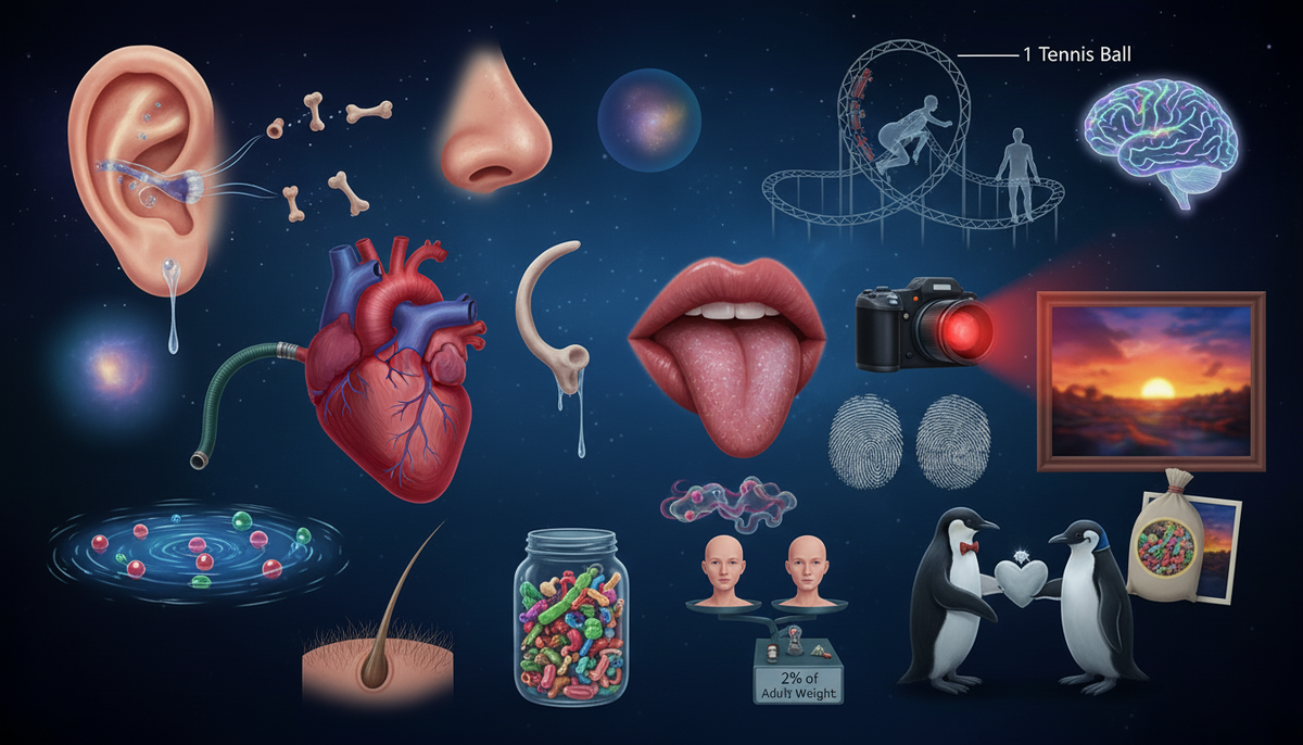 Человеческое тело — это не просто биологическая машина, а настоящая вселенная, полная загадок, чудес и неожиданных открытий. От микроскопических генов до способности к самовосстановлению, от свечения в темноте до жира, способного превратиться в мыло — каждый факт о нас способен вызвать изумление. Давайте заглянем за пределы привычного восприятия и откроем удивительные секреты, которые делают нас уникальными. У человека от 20 000 до 25 000 генов. Звучит впечатляюще, не так ли? Что ж, у кукурузы генов больше, чем у нас. К счастью, дело вовсе не в количестве, а в сложности организации. В любом случае, у кукурузы — около 32 000 генов, а у человека — чуть меньше. Наше тело состоит из множества химических элементов, включая железо. Железа в организме взрослого человека содержится около 4 граммов — этого хватит, чтобы изготовить три гвоздя длиной по 2,5 сантиметра каждый. Углерода в нашем теле достаточно, чтобы изготовить около 900 карандашей. А если бы у нас были перья (как у птиц), их хвати
