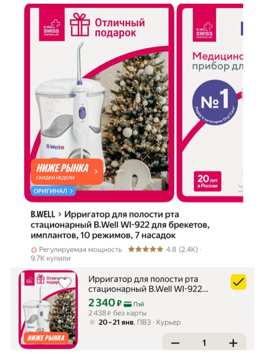 ИРРИГАТОР Скидка 5% с промо BWELLHNY2026 Оценка 4.8 ⭐️ Отзывов 2.4К Купили 9.7К 🛍 JANU55-AF - Скидка 100 ₽ на один любой заказ при покупке от 5000 ₽ ✅ Канал по скидкам 🔣 Бот с промокодами