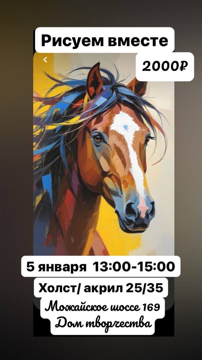 Уже завтра, 5 января, у нас состоится два мастер-класса: детский и взрослый Подробности в нашем телеграмм-канале: https://t.me/afisha_dom_tvorchestva #афиша #мастеркласс #лошадь