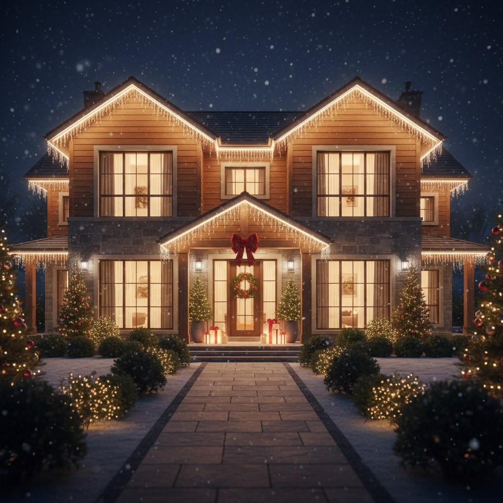 Новогоднее оформление фасада дома в Москве, СПБ и области