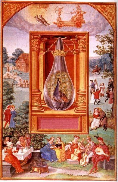 ”Splendor Solis” “Сияние Солнца” (автор – Соломон Трисмозин (Solomon Trismosin). Одна из наиболее красивых алхимических рукописей, самая ранняя её версия хранится в Государственном Прусском Музее в Берлине и датирована 1532-1535 годом. Она выполнена на пергаменте с декоративными границами, и подобно книге красиво окрашена и усилена золотом. Поздние копии, находящиеся в Лондоне, Касселе, Париже и Нюрнберге, столь же прекрасны. Лондонская версия (1582) выполнена в виде книги и состоит из 122 страниц, написанных готическим шрифтом, в том числе 22 цветных гравюр, сложных изображений, установленных в декоративных рамках. Переплёт книги изготовлен из красной кожи с золотым тиснением, форзац из розового шёлка с позолоченными краями. Гравюры так же включают ряд из семи алхимических колб, каждая из которых связана с одной из семи планет. Далее следует описание символики 22 цветных гравюр Splendor Solis. Их нумерация и последовательность не соответствует нумерации и последовательности книги. #ма