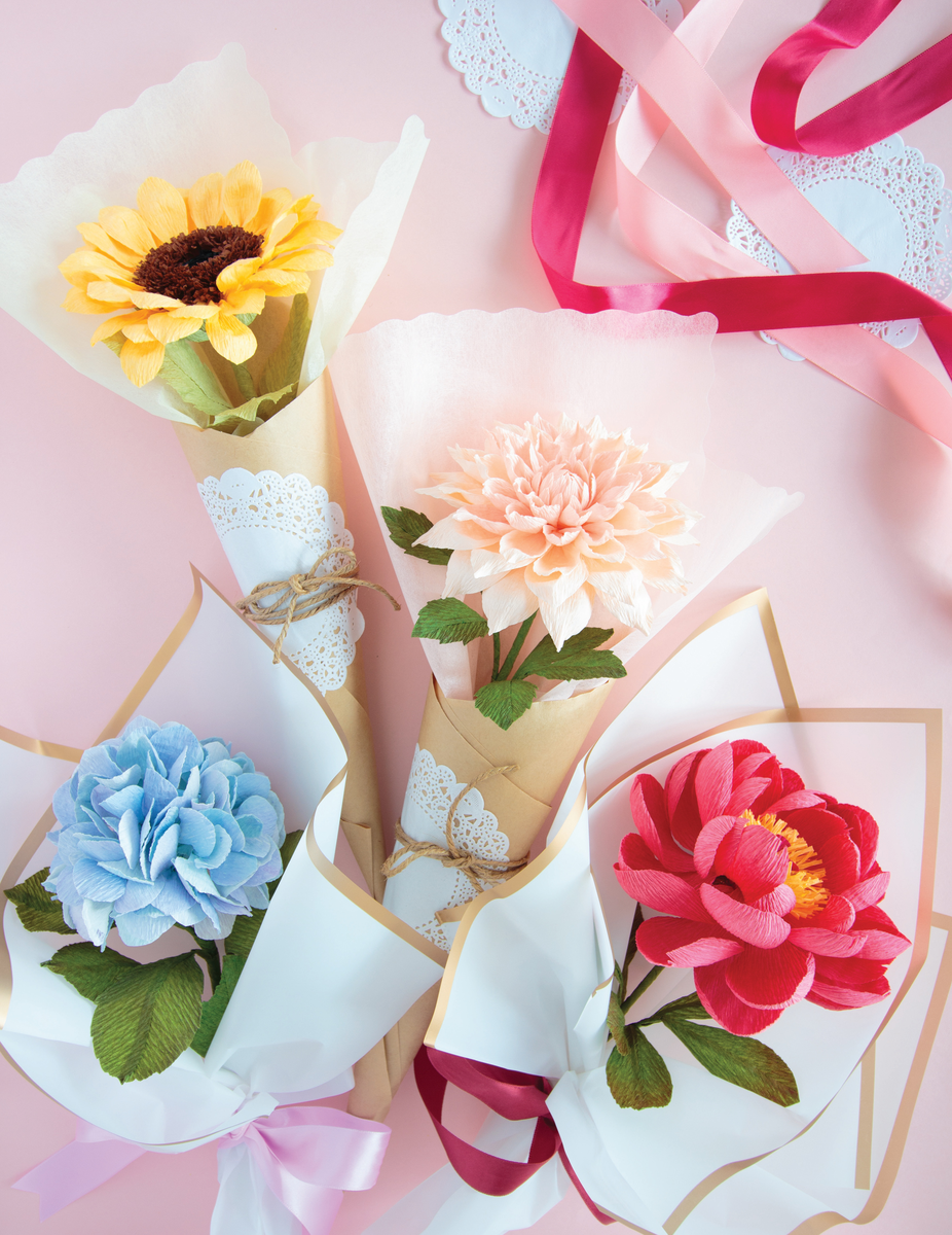 Наш раздел статей по бумажной флористике можно найти здесь. Дорогие читатели! В прошлых статьях мы уже показали, как делать красивые и эффектные цветы из гофрированной бумаги. Ещё мы дали готовые шаблоны — с ними у вас всё получится сразу, без лишних сложностей! Теперь ищем вдохновение, чтобы делиться с вами оригинальными способами создания подарков своими руками. Нет ничего милее самодельного презента, поэтому предлагаем лёгкие приёмы обёртки, которые превратят отдельные бумажные цветы в очаровательные сюрпризы для близких. Главный совет перед началом: не старайтесь идеально выглаживать бумагу! Позвольте складкам и заломам возникать естественно — переусердствованная обёртка выглядит неестественно. Для работы мы рекомендуем использовать доступные материалы: крафт-бумаги подойдёт крафт-бумага или обычная упаковочная; флористическая ткань — калька или тишью из канцелярских наборов; салфетка — ажурная бумажная; верёвка — джутовый шпагат; флористическая проволока, либо тонкая медная из хоз