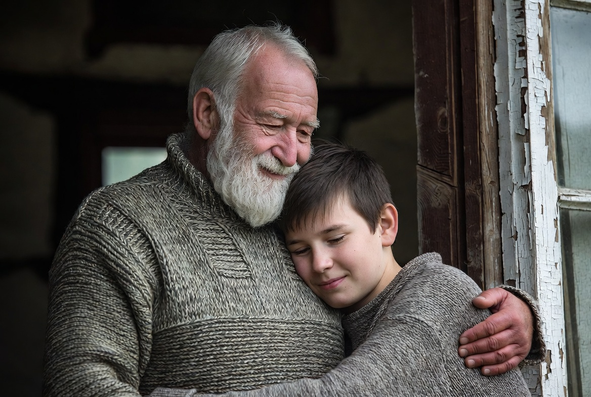 Дедушка встретил внука на крыльце, обнял и повёл в тёплый дом, где в печке потрескивали дрова.