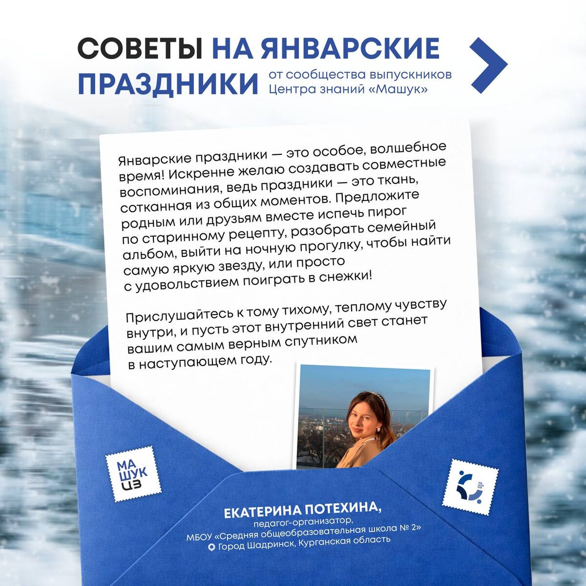 И это прекрасно, ведь каждый день можно наполнить по-разному. ☺️ От сообщества выпускников Центра знаний «Машук» мы собрали советы на январские: чем заняться, как провести день, чем порадовать себя или близких. (Все это внутри конвертов!) 📂 Смотрите, выбирайте и пробуйте то, что откликается именно вам!
