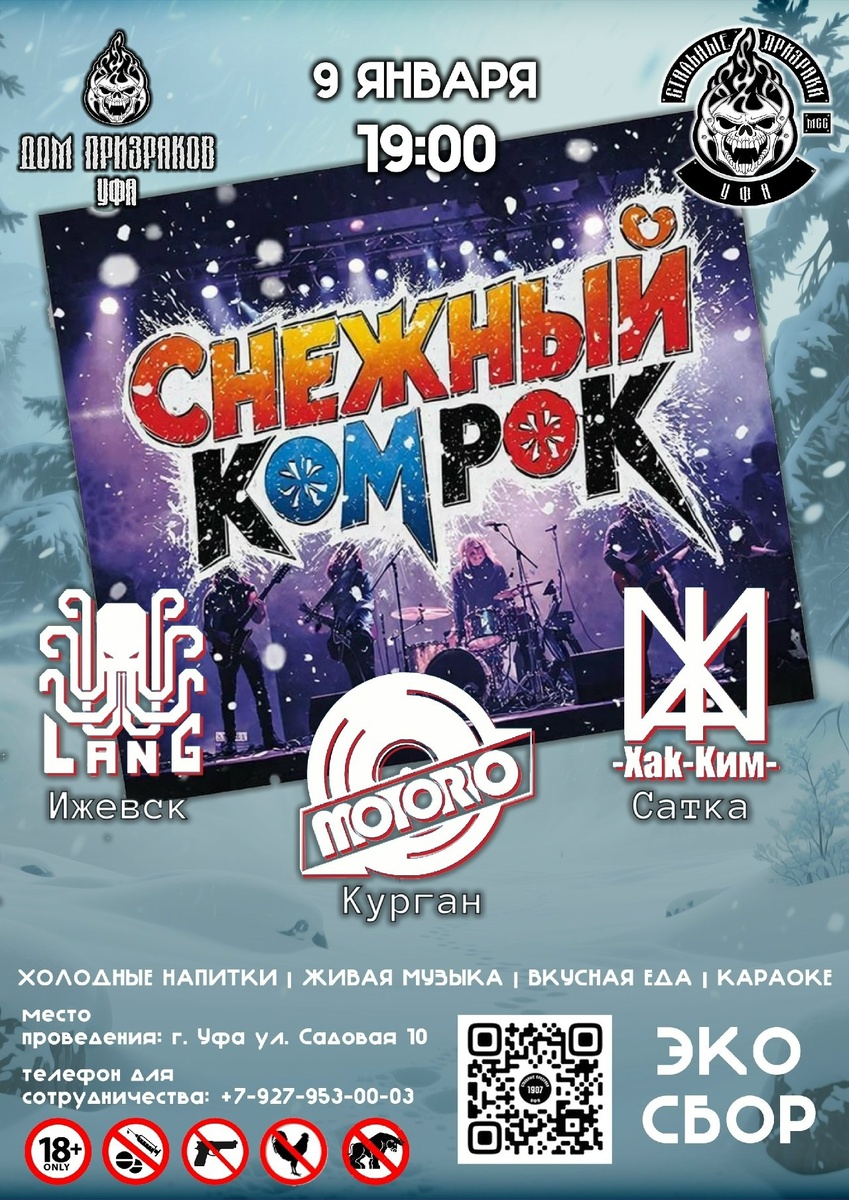 приглашаем вас заценить мощь СНЕЖНОГО Ком-Рока в МОТОКЛУБ «СТАЛЬНЫЕ ПРИЗРАКИ» MCC г.Уфа 🤘 От ледяного до бесконечности 🔥🤘 Специальные гости, живой звук и настоящий драйв!🤘 В ПРОГРАММЕ: 🎸 КАЧЕСТВЕННАЯ ЖИВАЯ МУЗЫКА: ➡ MOTORIO | Рок-группа 🔥 ➡ @club3114009 (Lang) 🔥 ➡ -Хак-Ким- 🔥 🍺 Холодные и горячительные напитки 🍴 Вкусная еда 🎤 Караоке 🏠 Сбор гостей: 19:00 📍 Адрес: г. Уфа, ул. Садовая, 10. 🎫 Вход: Экосбор 600 (с репостом данной записи до 5 января 400) ☎ Бронь столиков и сотрудничество: +7 (927) 953-00-03 📢 Мы в Telegram: t.me/steelghostsufa (подписка максимально приветствуется!) 👻 МОТОКЛУБ «СТАЛЬНЫЕ ПРИЗРАКИ» MCC г.Уфа 👻