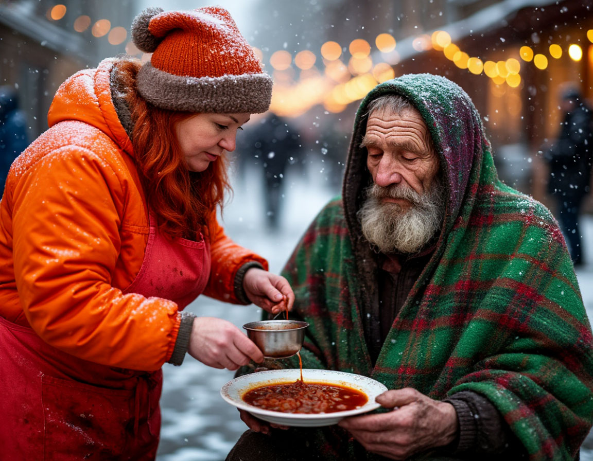 И постепенно тишина сменилась тихим гулом. Люди начали тихо разговаривать. Сначала благодарили нас. Потом — друг друга. Кто-то вспомнил смешной случай, кто-то — какой рецепт оливье был у матери. За столом сидели не «бездомные», а просто люди. На время. Все различия — в прошлом, в судьбах, в причинах падения — стёрлись перед этой общей тарелкой еды и общим светом фонарей в новогоднюю ночь.