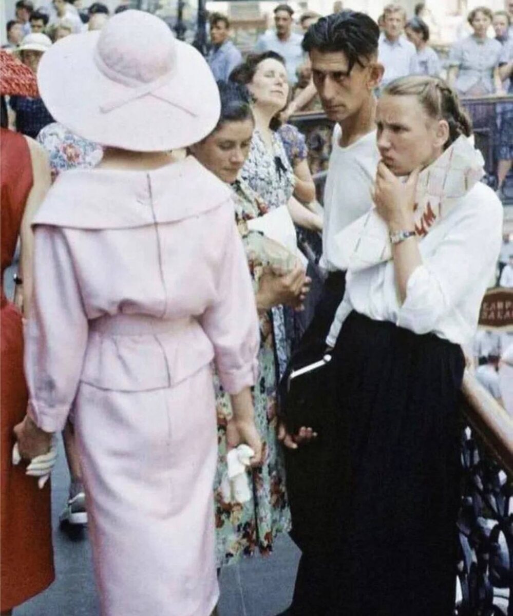 Интересна была реакция советских девушек на этих красоток: удивлялись, изумлялись, охали при виде каблуков, цокающих по брусчатке и хихикали, когда эти каблуки в ней же и застревали 🙂