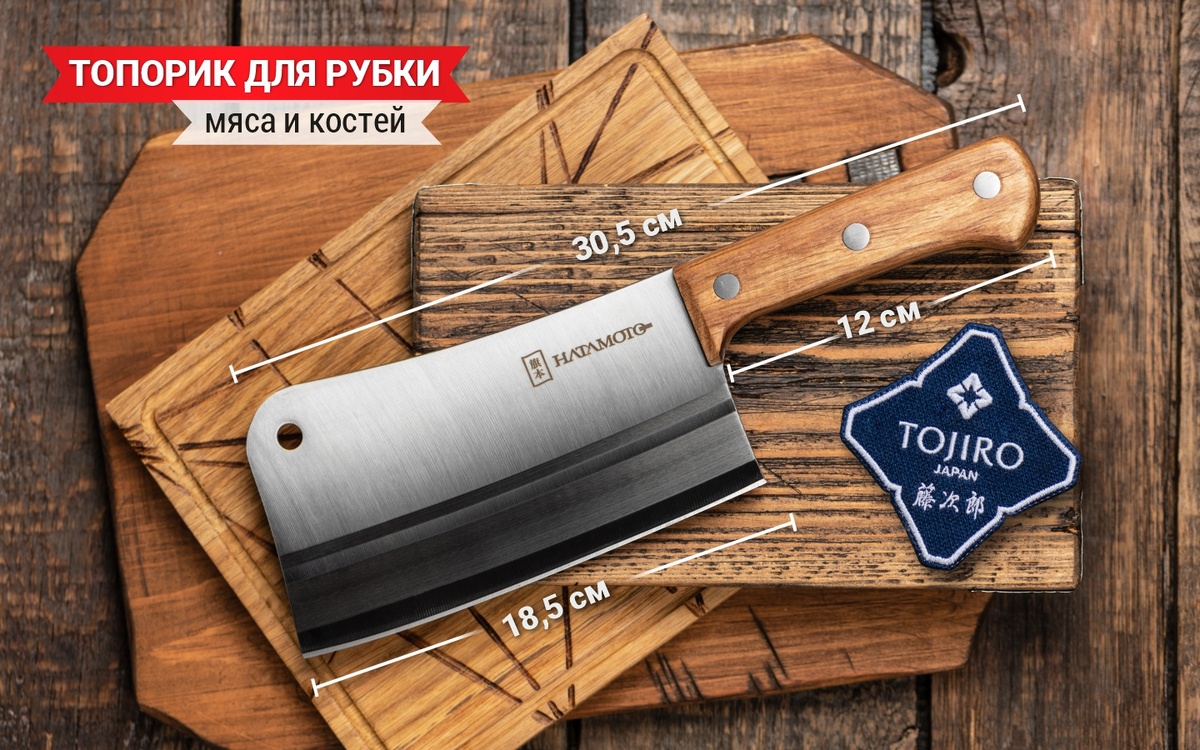 ТОП-10 выбора покупателей Tojiro 5 место — Hatamoto кухонный топорик Это не просто нож — это ударная рабочая лошадка на кухне, которую выбирают те, кто готовит часто и качественно. Что по фактам: • Модель: Hatamoto кухонный топорик — классическая мини-штука для резки и рубки. • Сталь: высокая нержавеющая — стабильность, стойкость к ржавчине. • Форма: широкое лезвие с прямой линией режущей кромки — контроль, сила и точность при нарезке. • Всё, что нужно на кухне: от плотных овощей до мягкого мяса. Почему он в топе: ✔ Универсальность — режет, шинкует, рубит плотные продукты ✔ Простой уход, не боится ежедневной эксплуатации ✔ Отличное ощущение баланса в руке Честно о слабых сторонах: — Это не классический шеф-нож — спец-форма может быть непривычна новичку — Не подходит для всех видов тонкой нарезки (например, филе рыбы) Вывод: Hatamoto кухонный топорик на 5-м месте — это выбор тех, кто действительно готовит много, быстро и жёстко. Он не красив для фото, но очень эффективен в деле.