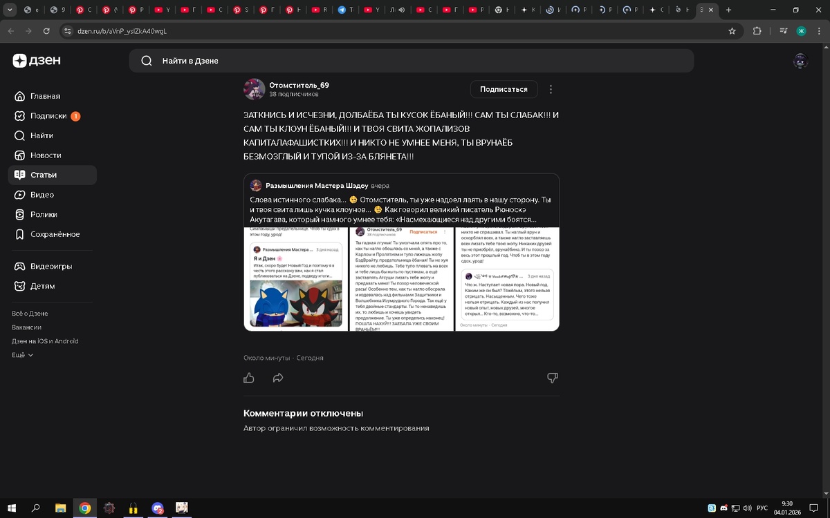 Вот честно. Хотел разнообразить контент, а не захламлять его, нет, у этого насекомого случилось новогоднее обострение, и он решил выплеснуть его на нас, и после этого у него хватает наглости заявлять, якобы мы первыми начали.