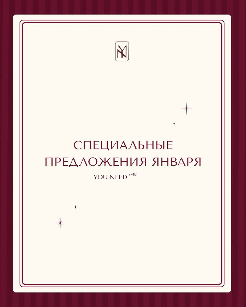 Без спешки, без суеты, в своём ритме. В YOU NEED (ME) весь январь действуют специальные предложения на самые востребованные процедуры — чтобы вы могли войти в новый год ухоженной, лёгкой и уверенной в себе. Это месяц, когда особенно приятно инвестировать в себя. Узнать все январские предложения и забронировать процедуру можно в актуальном разделе профиля или по ссылке. Ждём вас в YOU NEED (ME) ✨