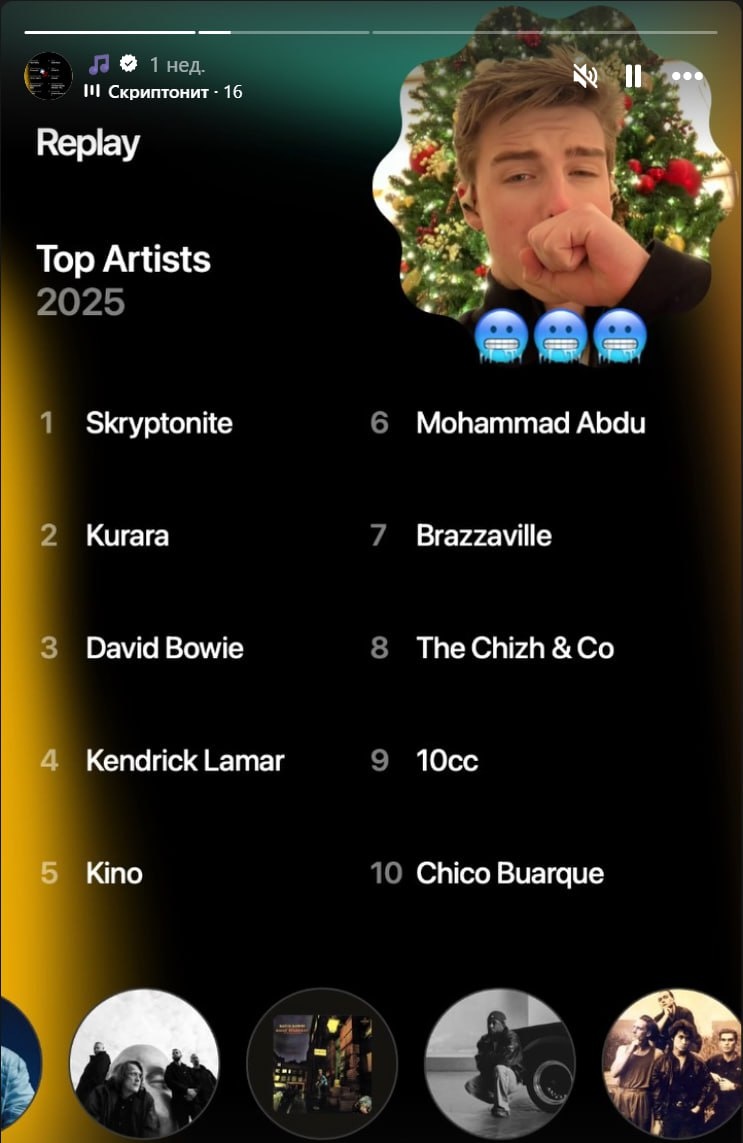 исполнителей из Apple Music. И на первом месте там... Скриптонит. А еще есть группы Кино и Чиж & Co. Как физик-ядерщик по образованию, всегда знал, что наука под Цоя и Скрипа усваивается на изи. #fcofftop