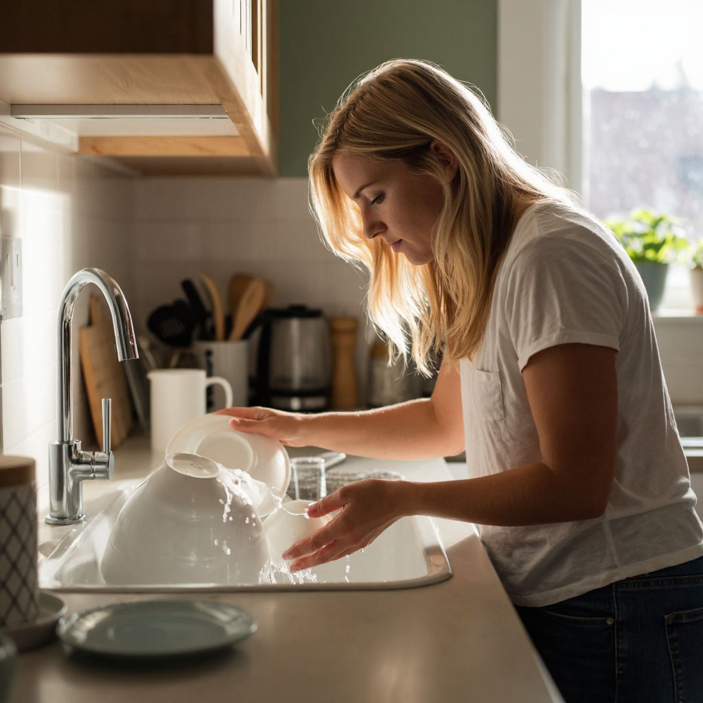 Марина сглотнула, крепче сжимая скользкую от мыла тарелку. Капли воды стекали по пальцам, оставляя мокрые следы на фартуке.