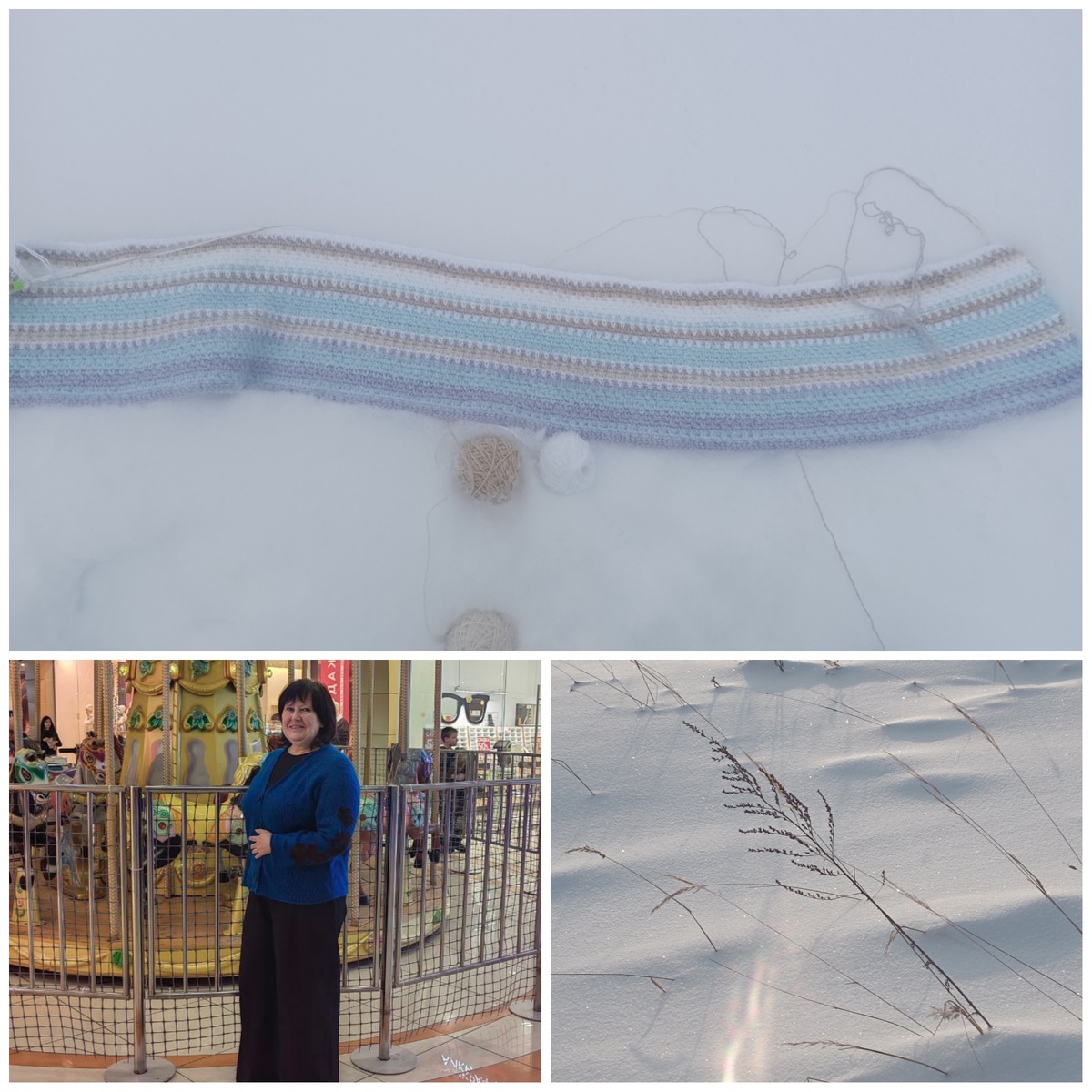 Солнышко скрылось, мелкая пороша мела, поэтому фотография немного блеклая. Но плед всё равно выглядит великолепно !