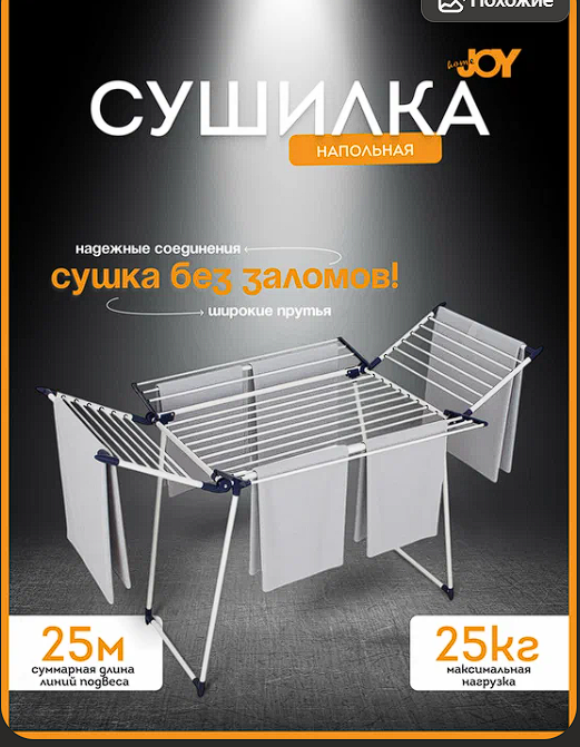 Устали играть в тетрис с бельём на складной сушилке, которая гнётся и падает? Надоело неделями ждать, пока вещи высохнут в тесной ванной, распространяя запах сырости? Знакомо чувство, когда стирка сделана, а итог — мокрый беспорядок по всей квартире. Пора сделать сушку белья не проблемой, а простым, быстрым и даже приятным ритуалом. Встречайте сушилку, которая меняет правила игры — четырёхстороннюю напольную сушилку JOY HOME. JOY HOME — это не аксессуар. Это — инвестиция в ваш комфорт и свободное пространство. Это решение, которое превращает рутину в один простой жест: развесил, разложил — и забыл. Через несколько часов собираете чистое, свежее, готовое к носке бельё. Подарите своему дому ощущение летнего дня. Даже если за окном осень.