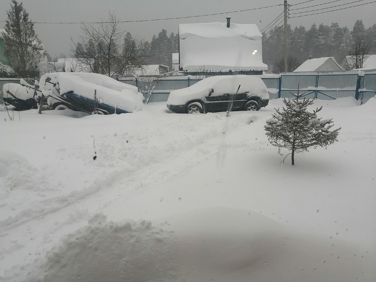 Это ужас, что делается. Ещё второго числа приезжали дети и свободно доезжали до самого дома. Вчера с раннего утра как начался снег, так до сих пор и сыплет.