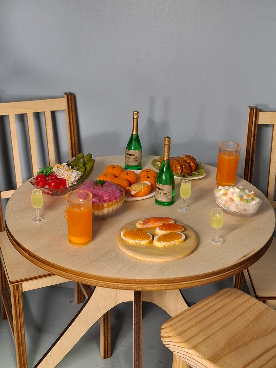 Новый год ребята отмечали тихо и по-домашнему - уж очень напряженными были последние недели. После некоторых споров решили приготовить еду в русском стиле - оливье, селёдка, мандарины. Стол накрыли на кухне, поставили несколько заснеженных ёлок и перетащили из мансарды камин. Включили музыку.