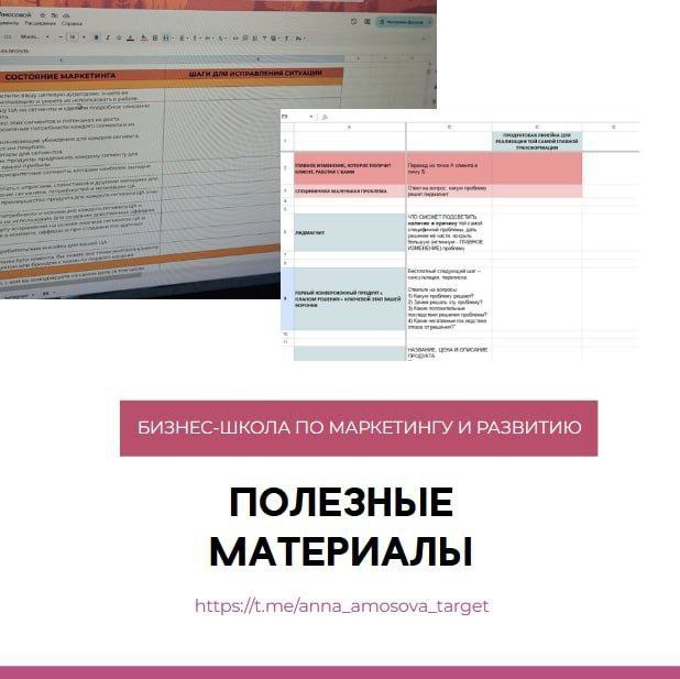 Собрала для вас ПОЛЕЗНЫЕ МАТЕРИАЛЫ⬇️ ▪️Почему консультации есть, а сделок — нет? ▪️Как продать через контент? Марафон продаж ( бесплатно) ▪️Как продавать системно свои услуги / продукты? ▪️Как выйти на стабильные 100-300+ на своей экспертности? ▪️Пошаговый план вашего роста х2 Маркетинговое экспресс-сканирвание вашего проекта ▪️Готовим свой Telegram к продвижению Статья ▪️5 признаков, что твоя ЛИЧНАЯ СТРАТЕГИЯ работает ▪️Как фрилансеру, специалисту и эксперту стать уверенным, получить опыт запуска, инструменты и клиентов? ▪️Маркетолог в кармане - прямо сейчас ▪️Путь вашего клиента. Линейка услуг, как источник стабильности ▪️Простая схема контент воронки, которая превращает подписчика в покупателя ➡️На каком этапе вы теряете клиентов - маршрутная карта ➡️Консультация по таргету ВКОНТАКТЕ ➡️БЕСПЛАТНОЕ ОБУЧЕНИЕ PROзапуск ➡️Как получить клиентов и сделать продажи за 10 дней? Быстрые деньги Всем хороших продаж❤️