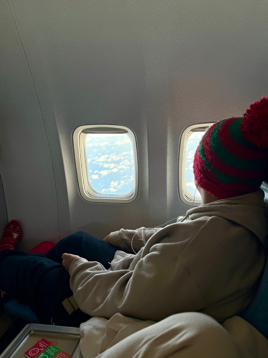 Самый главный плюс бизнес класса- это более комфортное и просторное место для сидения, когда колени не подпирают впереди стоящее кресло и локти не задевают соседей. В этот перелет, к сожалению, подкачал сервис. Хотелось после набора высоты поесть и спать, но команда решила, что лучше покормить людей ближе к полдню, т.к. подготовленное бортовое питание было полноценным обедом, а не завтраком.