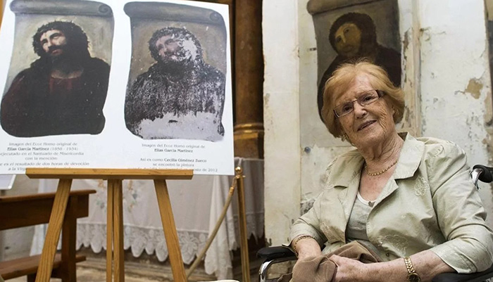 Сесилия Хименес Суэко родилась и прожила всю свою жизнь в маленьком провинциальном городке Борха в испанской провинции Сарагоса. Она была вдовой, воспитавшей двух детей-инвалидов. Сесилия была, как говорили все, кто её знал, очень доброй женщиной, готовой всегда помочь любому, кто в этом нуждался. Неудивительно, что бабуля со столь активной жизненной позицией, как сейчас бы сказали, мгновенно откликнулась на просьбу настоятеля местного храма Милосердия о реставрации фрески с Иисусом Христом.