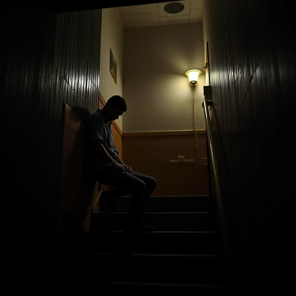 За разговором пролетело часа три. После того как нынешняя власть была полностью унижена, мужчины решили расходиться. Наш герой решил спуститься до магазина, как и планировал. Там он встретил знакомую продавщицу, которая проводила его покупку баллона пива словами: «Ну куда в тебя лезет, уже три месяца бухаешь». Кое-как, поднявшись до своей квартиры, мужчина обнаружил, что ключей при себе у него нет, а дверь закрыта. Герой спустился, до двери соседа чуть ли не падая с лестницы и начал долбиться к нему в дверь. Никто не открывал: видимо сосед вырубился и спит. Мужчина уселся на лестницу, открыл пиво и хлебнул. И тут же его стошнило, потому что явно уже перебрал. Тут снизу с возгласом: «Фу, ты че творишь, мужик?» поднимается здоровый парень. Берет его за руку, приподнимает и говорит: «Мужик ты че тут всю лестницу заблевал? Ты как сюда попал? Давай-ка вали из нашего подъезда». И больно держа за руку, вывел его из подъезда.