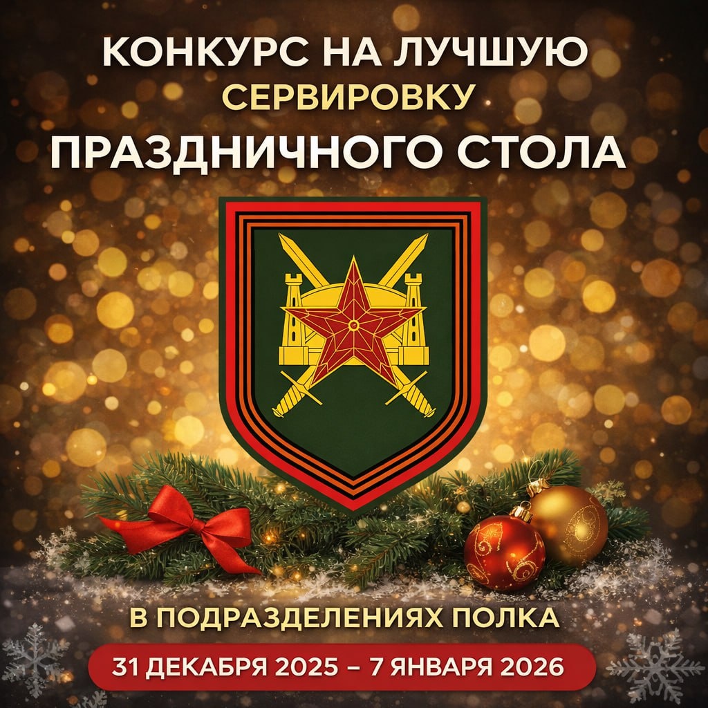 К участию в конкурсе приглашаются штатный и нештатный личный состав поваров подразделений. 👐 Подготовительный период: с 31 декабря по 7 января. Присылайте фото или видео сервированного праздничного стола в продслужбу. 📹📸Фото или видео, отобранные жюри, опубликуем в телеграм-канале «Вестник 1430 Полка». ❗️❗️❗️При съемке не допускать приметных ориентиров, которые могут послужить геопривязкой для определения позиций. На кадрах также приветствуются патриотическая символика, обстановка в местах приема пищи, посвященная военной службе. Голосование состоится в группе «Класс 7.0» ориентировочно 10 января. Призы: В соответствии с приказом командира полка лауреатов конкурса наградят дипломами за I, II и III место (итого 3 диплома). Также победителю конкурса за 1 место предоставят пять суток к отпуску, за 2 место — двое суток, 3 место — ценный подарок. Подписаться | Связаться с полком Служить в полку