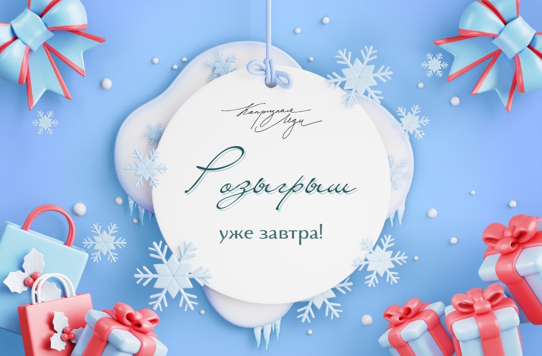 ! 🎰✨ Напоминаем, что уже завтра, 5 января, на первом эфире 2026 года, мы разыграем 25 шикарных подарков среди наших покупательниц! Напоминаем про призы: 🎁 5 мультистайлеров 🎁 5 сертификатов на покупки по 3 000₽ 🎁 5 стильных шкатулок для украшений 🎁 5 серебряных сюрпризов с символом наступающего года 🎁 5 новогодних игрушек Это последний шанс войти в новогоднюю сказку! Не упустите возможность начать год с подарка от «Капризной Леди»! 💖 Пост с условиями: https://vk.com/wall-195494352_537896 Ждём каждую в эфире завтра! А вы уже чувствуете, что удача на вашей стороне? 😉