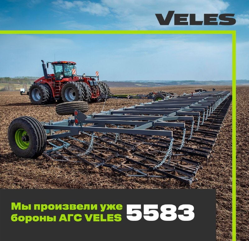 ! 🌾 На сегодняшний день уже произведено 5 583 бороны АГС VELES. Это показатель того, что агрегат является невероятно востребованным и применяется для одной из ключевых задач весенней обработки — своевременного закрытия влаги и разрушения почвенной корки, на что обычно отводится не более 3-5 дней, поэтому агрегат должен быть крайне надежен и поэтому фермер делает ставку на VELES. Мы — официальный дилер VELES и предлагаем только проверенную и надежную технику. 📞 По всем вопросам звоните: +7 (831) 410-64-45