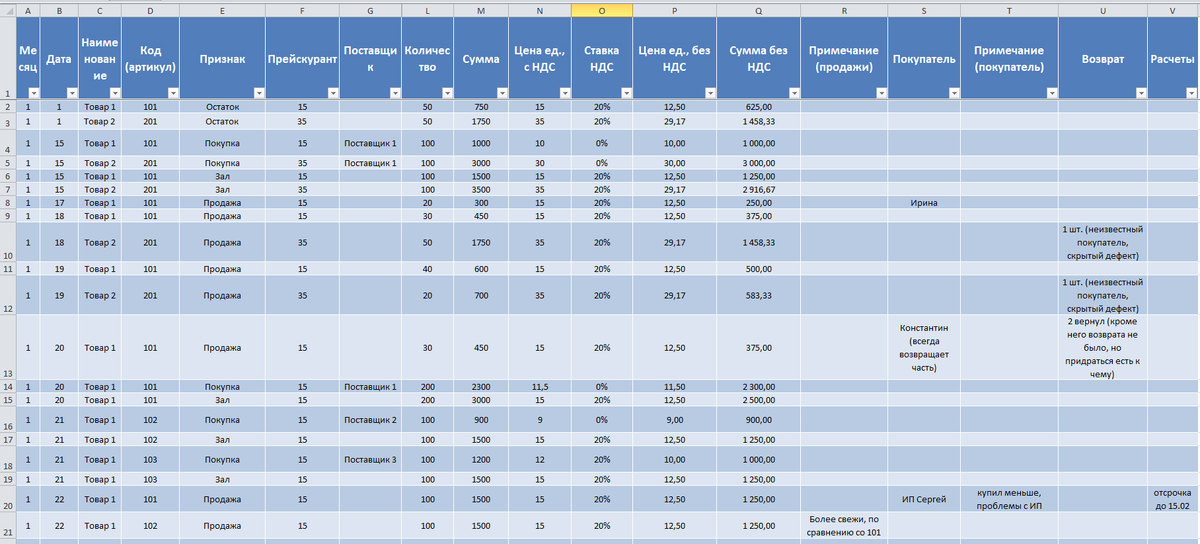 Ситуация. У вас есть таблица, которую вы ведете в excel для учета операций и формирования отчетов. Таблица рабочая, но есть некоторые сложности, которые приводят к ошибкам, при занесении данных. Давайте посмотрим какие рекомендации даст GPT для доработки этой таблицы. Исходная таблица выглядит так Пишем промт GPT дает такой ответ "Ниже — изменения, которые как финансист я бы внес в ваш реестр, чтобы он стал «правильным источником данных» для отчетов (сводные/Power Pivot/BI) и чтобы новые строки добавлялись без поломок. 1) Уберите дубли и «ручные» поля, которые считаются автоматически Сейчас у вас одновременно есть: Месяц и Дата. Для отчетности достаточно одной даты операции (и дальше любой месяц/квартал/год считается). Оставить поле Дата как единственный первичный признак периода. Также не давайте пользователю руками вводить расчетные поля: Сумма, Цена ед., с НДС, Цена ед., без НДС, Сумма без НДС, Ставка НДС 2) Нормализуйте структуру: разделите «факт операции» и «справочники» Сейчас