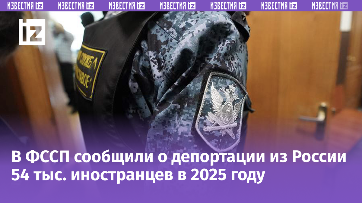 В 2025 году из России было принудительно выдворено более 54 тыс. иностранцев из-за нарушений законодательства. Об этом 4 января сообщили в пресс-службе Федеральной службы судебных приставов (ФССП). «За [первые] 11 месяцев 2025 года принудительно выдворено за пределы Российской Федерации 54,4 тыс. иностранных граждан и лиц без гражданства», — приводит текст сообщения ТАСС. В ведомстве отметили, что в аналогичный период 2024 года было выдворено 79 тыс. иностранцев. Ранее, 10 октября, СМИ сообщили о принудительной депортации из Латвии свыше 800 россиян до 13 октября по причине несоблюдения миграционных норм. Уточнялось, что в 2024 году Латвия ужесточила закон об иммиграции для граждан РФ. Официальный представитель МИД РФ Мария Захарова заявила, что действия Латвии по требованию покинуть страну гражданам РФ, не подтвердившим знание латышского языка, являются нацизмом. Все важные новости — в канале «Известия» в мессенджере МАХ