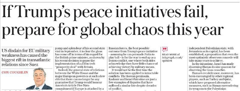 «Глобальный хаос ждет, если мирный план Трампа провалится!» – таким заголовком встретил 2026 год аналитик Кон Кафлин из The Daily Telegraph