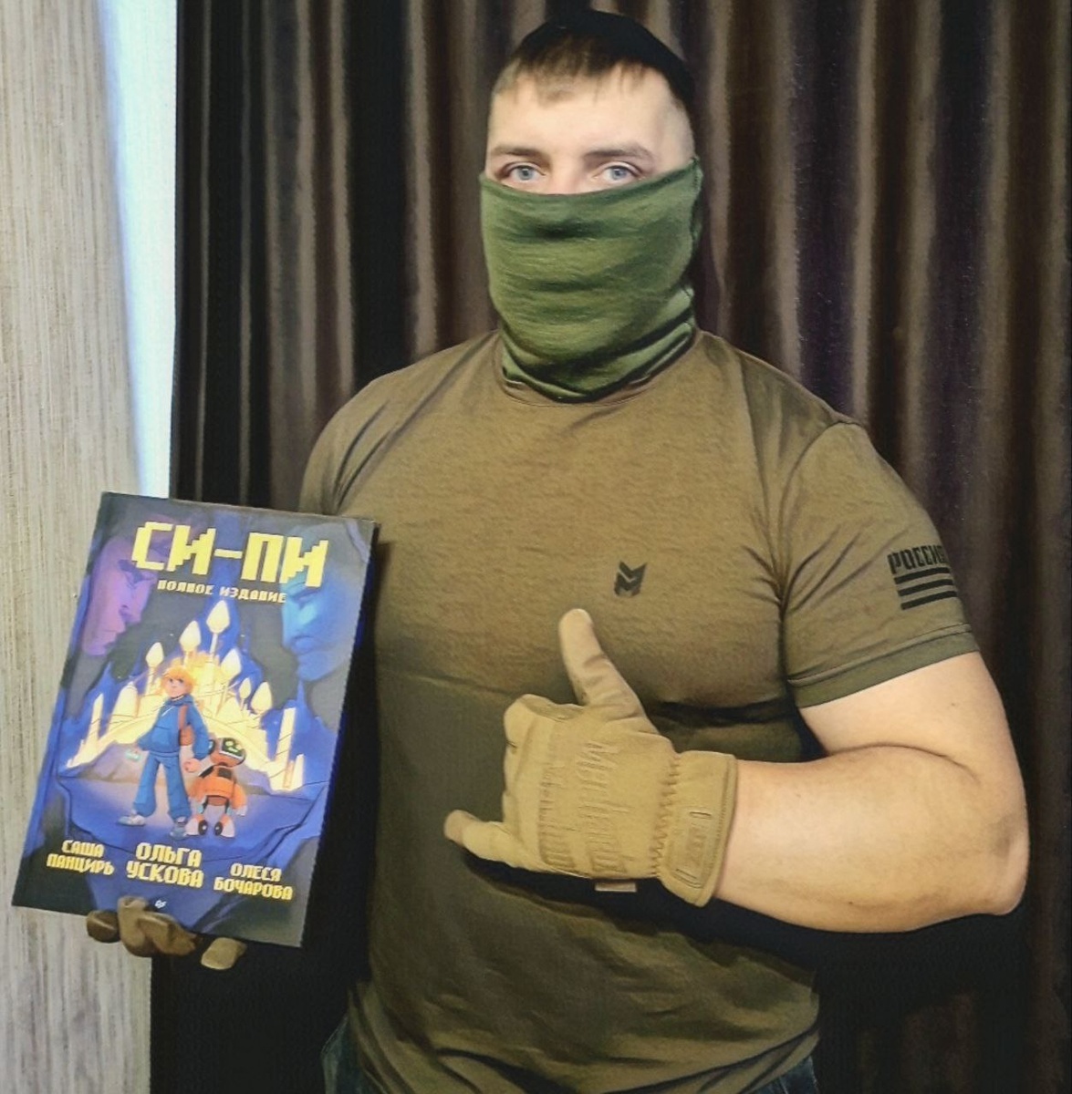 Это легендарный Космонавт. Он защищает нас с вами на сложных участках фронта. Книжки Си-Пи с подписями героев Барсы уехали в семьи военных к детям. Спасибо - бойцам Барсы. Спасибо - Андрею, Диме, Космонавту. Любим. Ждем. Всегда благодарны и поддержим. Мы с вами одной крови!