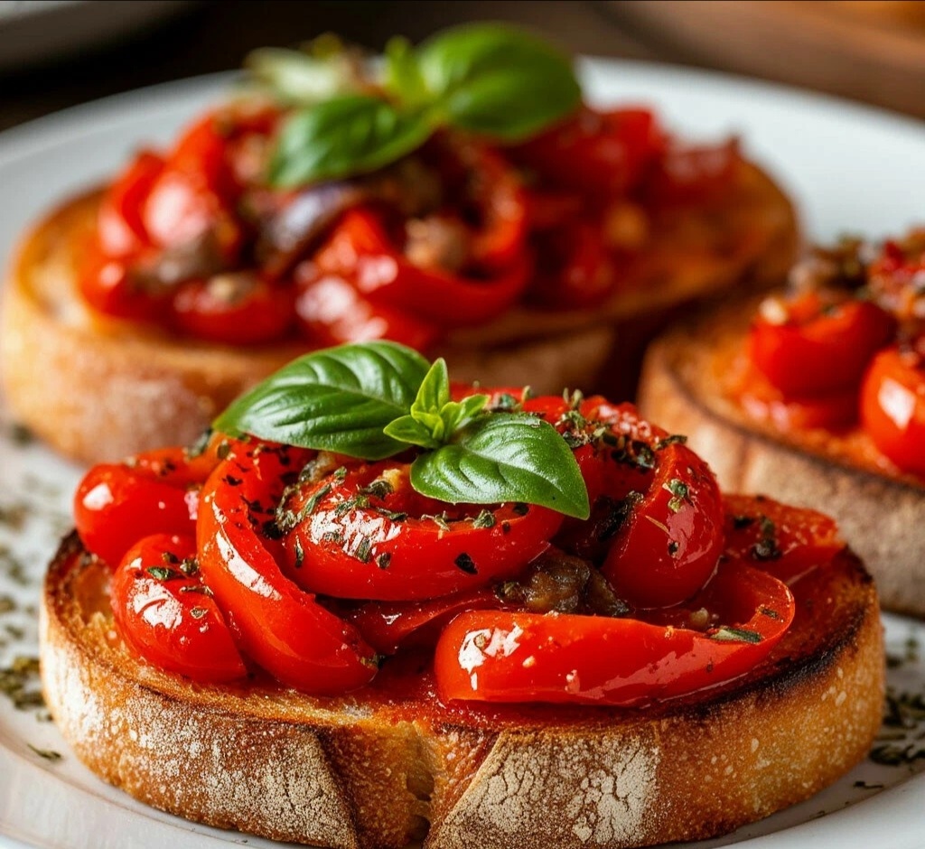 Мяу!Когда нужно за 15 минут создать маленький кулинарный фурор, на помощь приходит Италия! 🇮🇹 Эта брускетта — синоним элегантной простоты. Сладкий перец, солёная рыба, хрустящий хлеб... Это сочетание проверено веками и никогда не подводит! 🥖✨