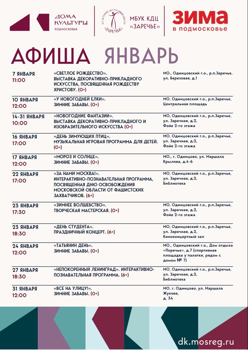 Дорогие друзья! Ждем вас на мероприятиях в КДЦ "Заречье" в январе! ❄