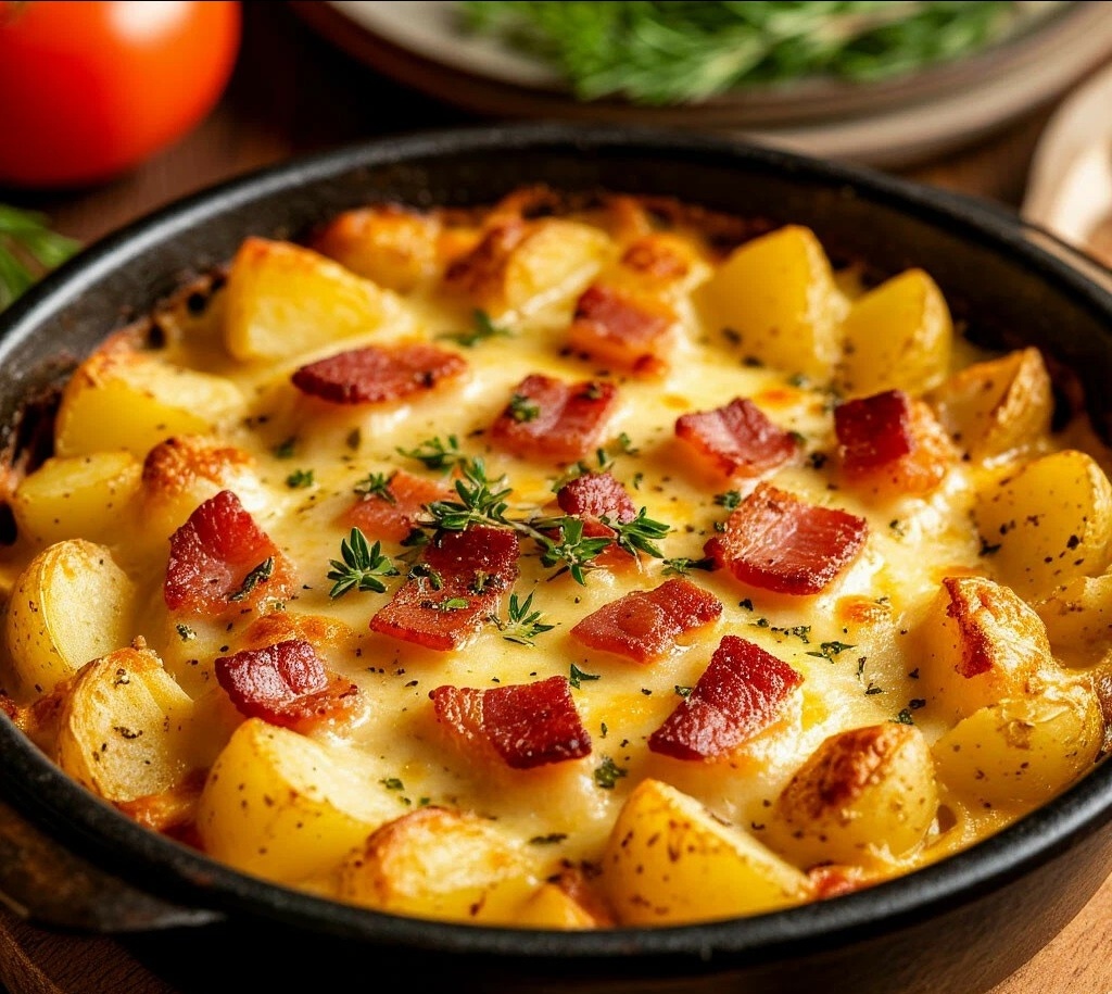 🎨 ПОЧЕМУ ЭТО ШЕДЕВР? Это максимализм в мире комфортной еды!Картофель пропитывается сливочно-сырным соусом с нотками вина, бекон даёт солёность и дымок, а расплавленный сыр с корочкой создаёт божественную текстуру. Блюдо, которое не оставляет равнодушным ни одного едока. Это объедение! 🤤