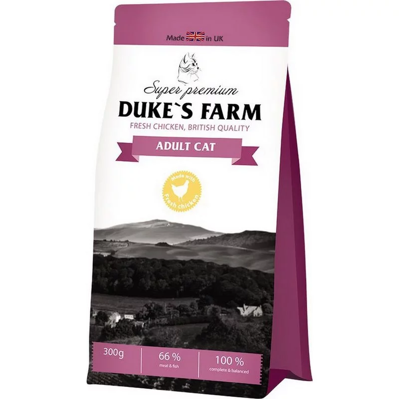 Да, все сухие и влажные корма Dukes Farm являются полнорационными и сбалансированными, не требующими дополнительных витаминных добавок. - Есть ли у Dukes Farm корм для кошек-аллергиков?